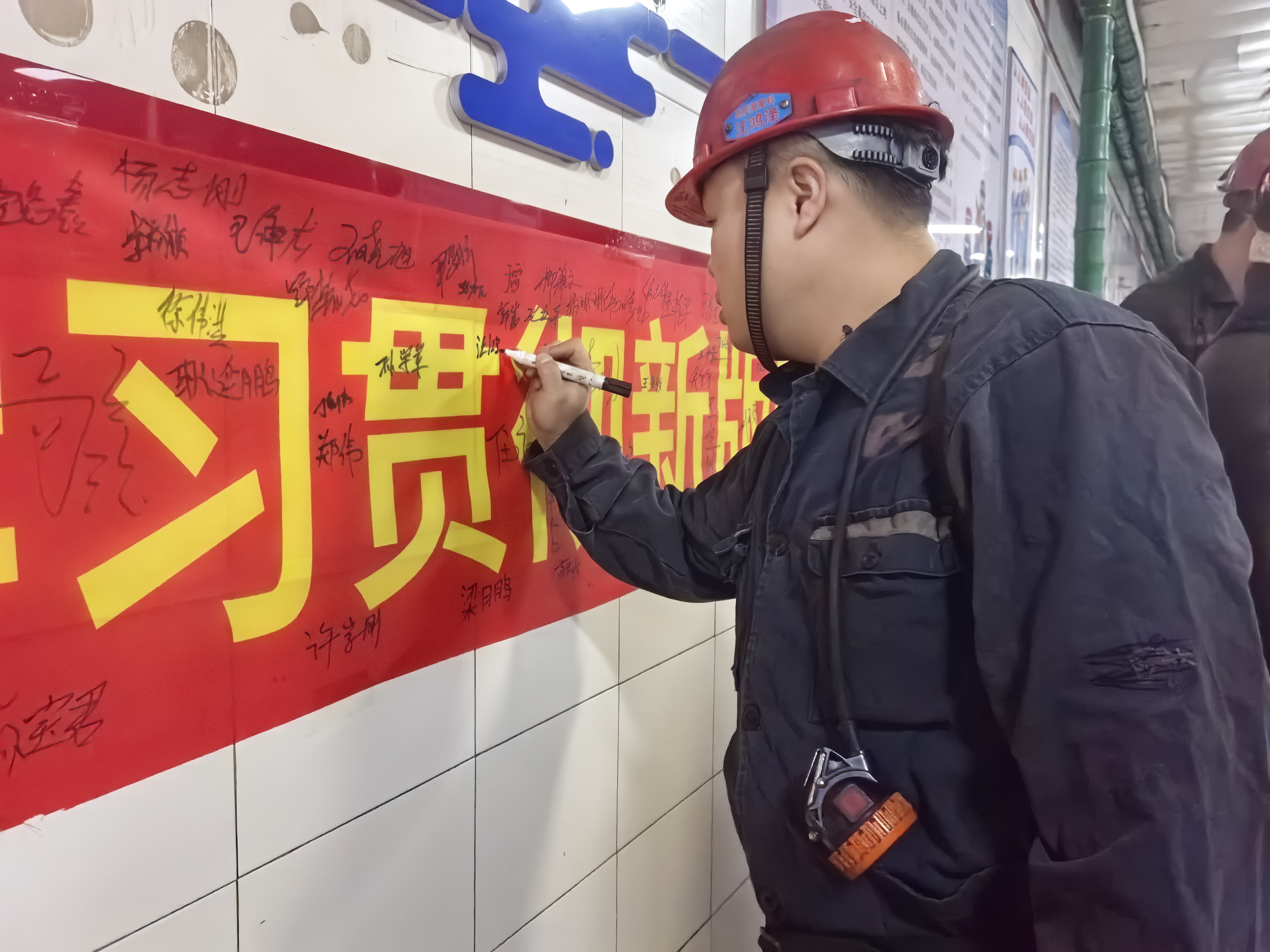 城山煤礦礦工在安全墻上簽字